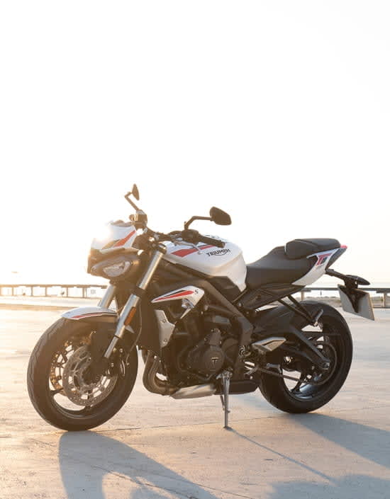 De Street Triple-serie staat bekend om zijn opwindende rij- en weggedrag en dit heeft ervoor gezorgd dat de wereldwijde reputatie van de Street Triple-serie als uitstekend toegankelijk verzekerd is. De verbazingwekkende vermogen-/gewichtsverhouding staat centraal in de revolutionaire prestaties en wendbaarheid van de Street Triple, en met 166 kg (droog gewicht) is het RS-model de lichtste motorfiets in zijn klasse.